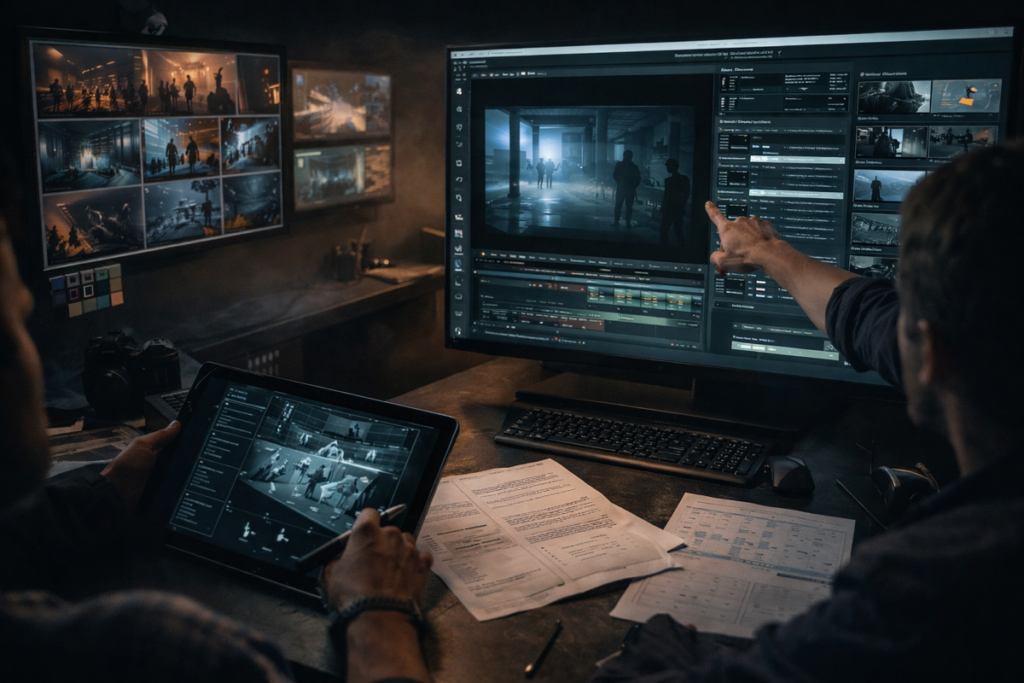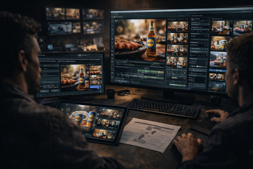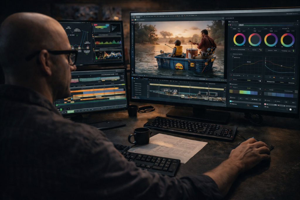 Editing, compositing, color grading, sound design, and quality control in line with professional film and advertising standards. Phase E — Post-Production Editing, compositing, stabilization, upscaling, and mastering for advertising and cinematic delivery standards.